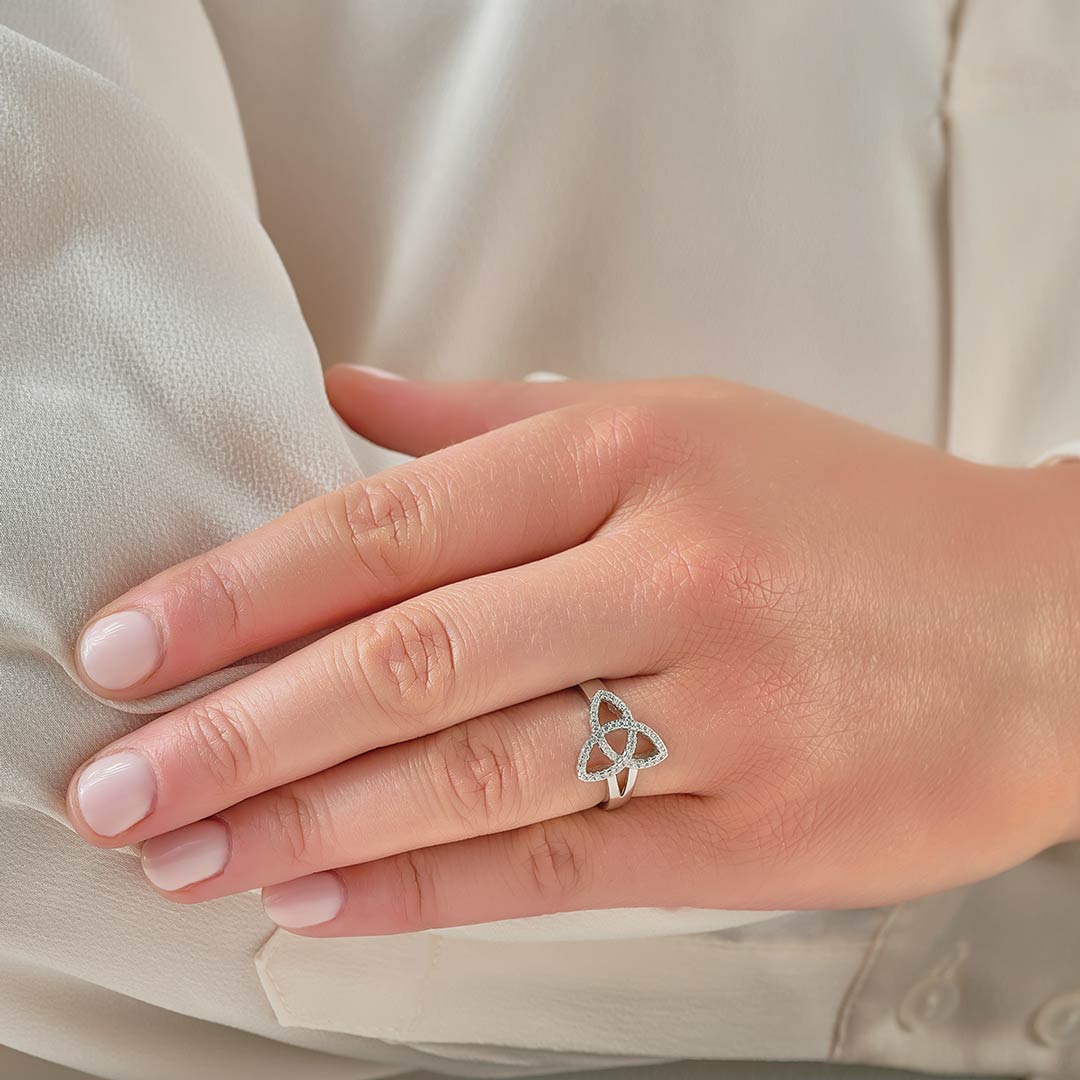 This sterling silver ring with cubic zirconia makes a real statement, and would make a fabulous gift for a loved one. The Trinity Knot has no beginning and no end, symbolising eternal life and everlasting love. It has been Irish hallmarked in Dublin Castle.
